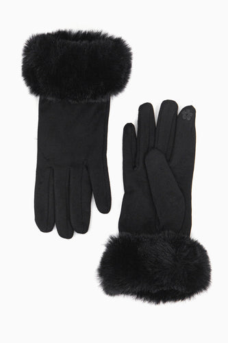 Black Velvet Gloves with faux Fur Trim
